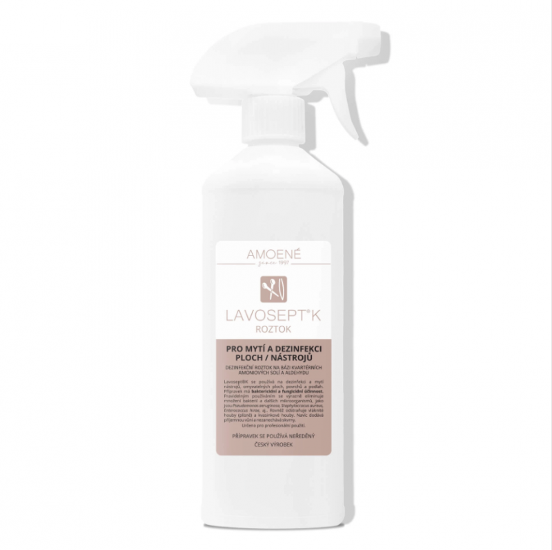 LAVOSEPT K je dezinfekční přípravek na bázi kvartérních amoniových solí a aldehydů ve formě rozředěného koncentrátu určené k okamžité aplikaci pro dezinfekci ploch a nástrojů. Lavosept K se používá na dezinfekci a mytí všech omyvatelných ploch a povrchů a dále k dezinfekci nástrojů ponorem, zejména v sociální a zdravotnické sféře, službách, pedikérských a manikérských salonech, kadeřnictví, kosmetikách, welness a fitness centrech, kde výrazně snižuje počet bakterií. Odstraňuje kromě jiného mikroskopické vláknité houby – plísně, mikroskopické kvasinkové houby – kvasinky a dále mikroorganizmy Pseudomonas aeruginosa, Staphyloccocus aureus, Enterococcus hirae, aj. Mimo to nezanechává skvrny.
