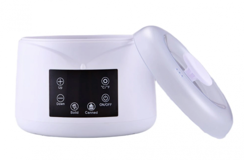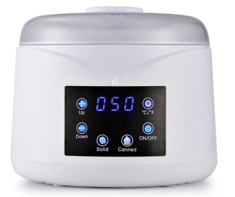 Ohřívač vosku s nastavitelnou teplotou od 30°C do 125°C na depilační vosky v plechovce, depilační zrnka. Objem cca 500ml.